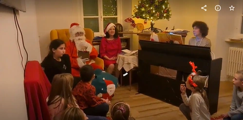 Sala 1: circa 25 m² con megaschermo, 20 sedie, cuscini, divani e tappeti;